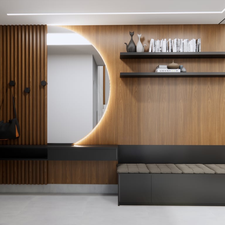 Na consultoria, oferecemos soluções práticas e eficientes para transformar seu espaço. Já no projeto de interiores, podemos ousar um pouco mais. Aqui, vamos além, criando algo mais elaborado e personalizado.